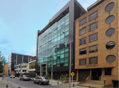 Bájate en la estación Calle 85 y camina hacia la Carrera 19. Gira a la derecha y, a mitad de la cuadra, encontrarás el Edificio Almaru, de fachada de vidrio en tono verdoso y estructura oscura.