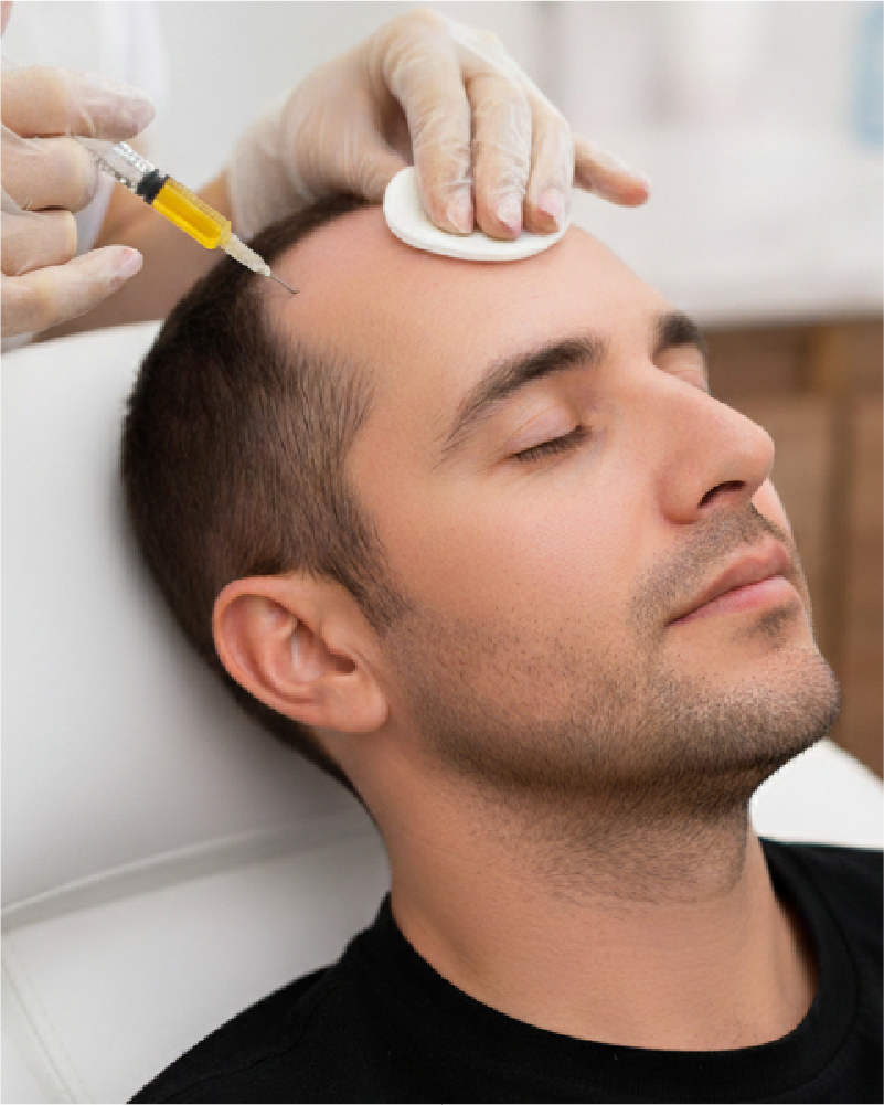 Mesoterapia, plasma rico en plaquetas y casco de fototerapia LED y láser para fortalecer cabello y cuero cabelludo.